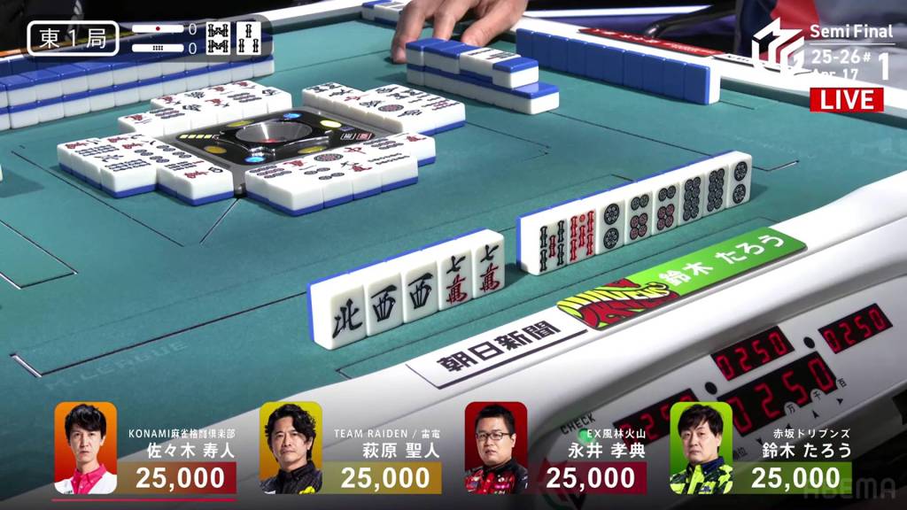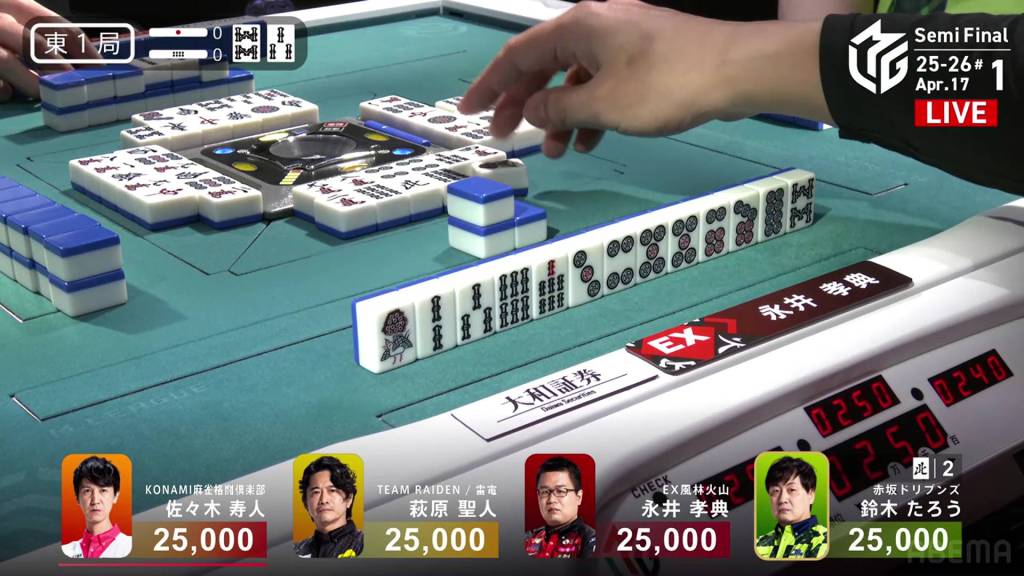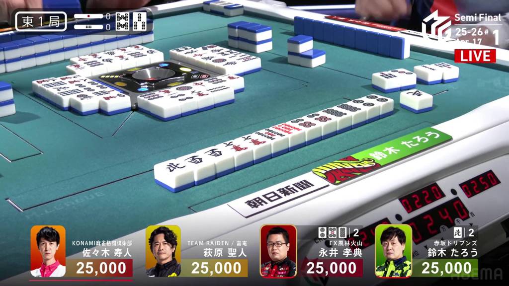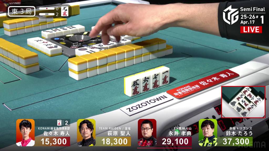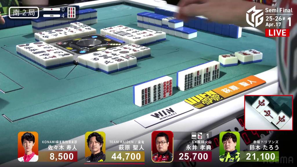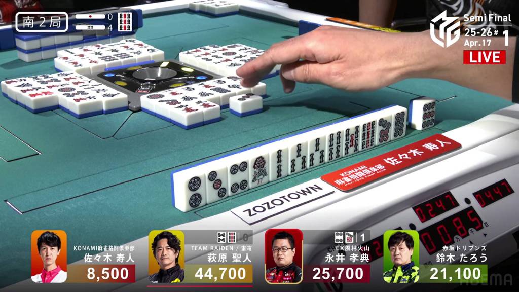 In S2-3, Hagiwara is the dealer in 2nd place, trailing Nagai by only 200.