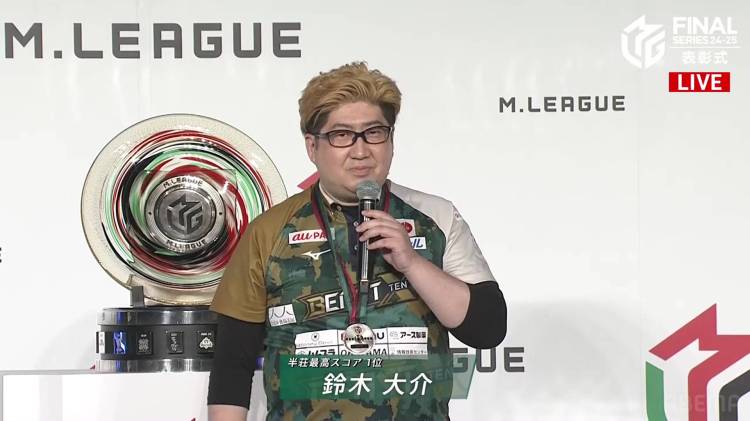 The MVP Award is given to the player who had the highest total score at the end of the regular season. Starting this season, the winning player will receive 2,000,000 yen and a medal that looks like the M-League Championship Plate.