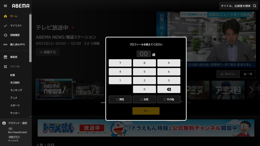 Next, AbemaTV will ask a few details about yourself to give you show recommendation (or you can just put in random information if you want to).