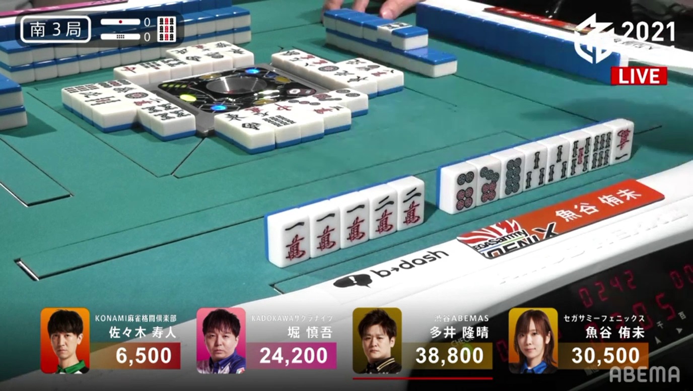 Sometimes in mahjong, you make moves that you regret instantly. You discard a tile that you weren’t supposed to or you make a call that ruins your hand. But when you catch yourself at the last minute, you end up avoiding the disaster that could have been. In the 16th week of M-League 2021, aContinue reading “M-League 2021 Week 16: Crisis Averted”