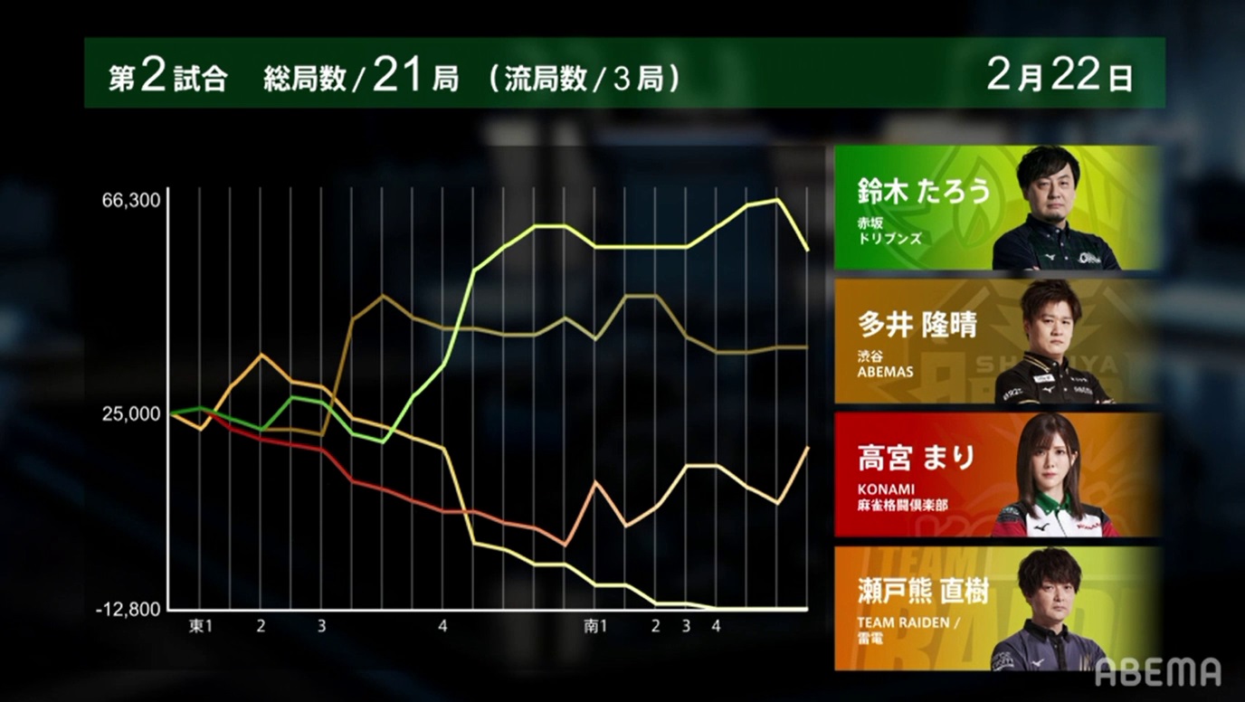 On October 15, 2021, the Akasaka Drivens finally had a chance to use their newest punishment for players who get 4th place. In the first game on October 15, Murakami Jun dealt in 4 times and lost points in 7 of the 10 hands. These deal-ins caused Murakami placed 4th and scored -1,900, the firstContinue reading “Akasaka Drivens Adopt Rhino, Uses It For 4th Place Punishment”